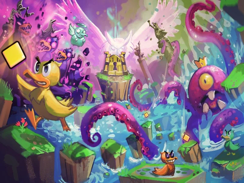 Ducks Amok is a real-time card game where players take on the role of duck gods, guiding their lost believers to the promised land of Ducktopia — all while protecting them from the Phantom Owl and other dangers that lurk in the night.